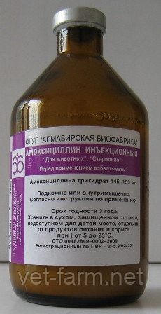Амоксициллин ветеринарный, 15-процентный антибиотик, во флаконе - 10 мл или 100 мл . Разработан для лечения инфекций, которые вызваны бактериями .