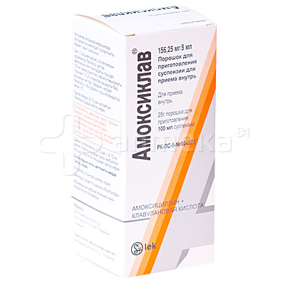 Амоксиклав® (156,25 мг/ 5 мл) форма: Порошок для приготовления суспензии для приема внутрь . Полное описание (Амоксиклав® (156,25 мг/ 5 мл): применение, состав, дозировка, показания, противопоказания, побочные действия .