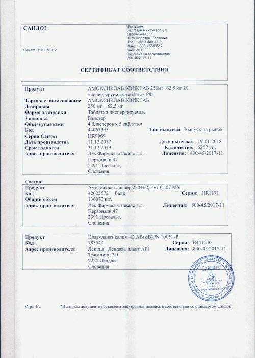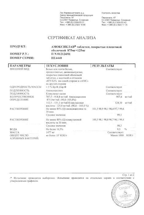 что соответствует содержанию амоксициллина875 мг