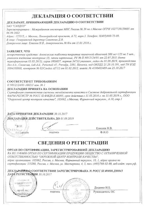 что соответствует содержанию амоксициллина500 мг
