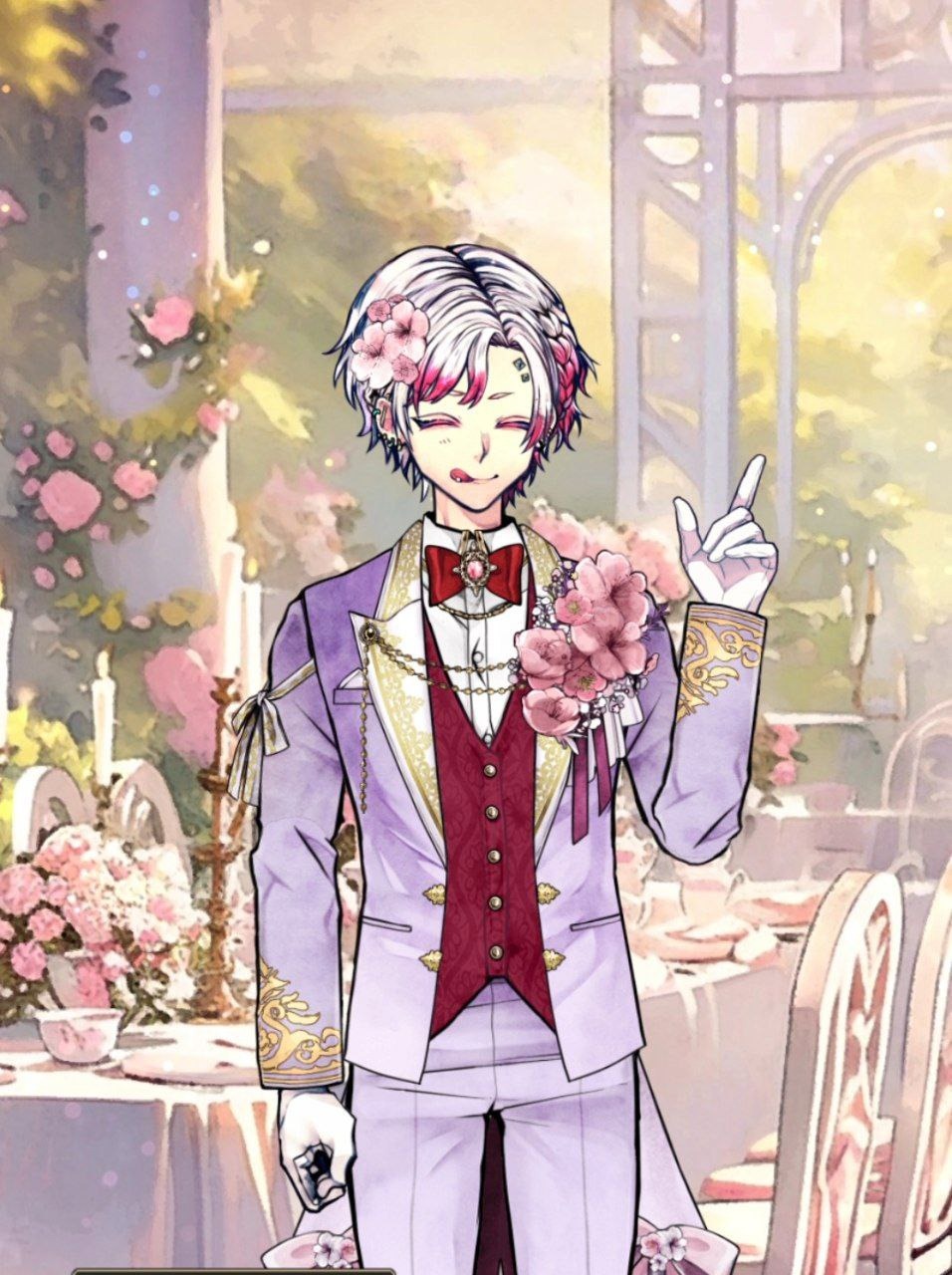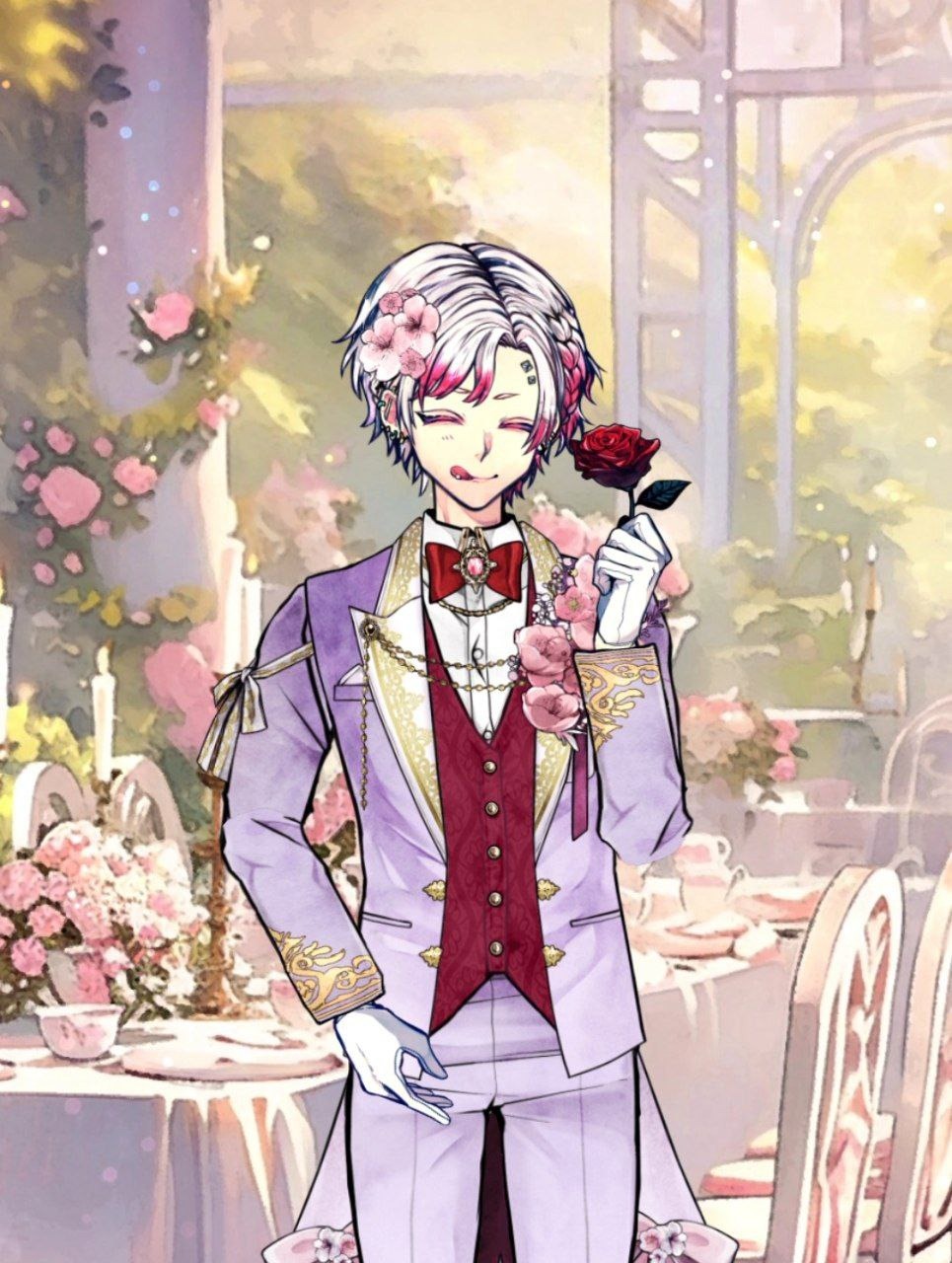 Когда меня спрашивают о том, что делать в качестве "возлюбленного", а не дворецкого... Я не знаю, что ответить. Конечно, я хочу повеселиться... Но больше я хочу узнать человека, с которым буду проводить время. Пока я думала об этом... Я заметила розу на тумбочке. Это роза оранжевого цвета, которую вручил мне Аммон утром. Кроме этой розы... Он сказал, что есть много цветов, которые желают счастья. Если мы поговорим о любимых цветах друг друга... Смогу ли я лучше понять Аммона?