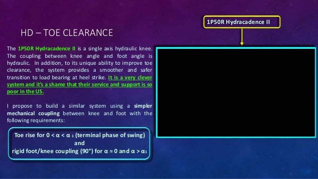 The knee disarticulation prosthetic system was designed taking into account that the amputee is able to bear weight on the end of their residual limb, and long length of the limb increases their control of the prosthesis .