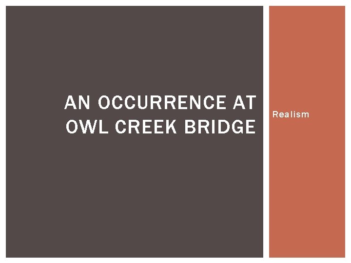 Download . Essay , Pages 2 (358 words) Views . 2 . Ambrose Bierce uses realism to portray the dark reality of the Civil War in his 1890 short story, An Occurrence at Owl Creek Bridge . However, Bierce does not portray the brutality of the Confederates, regarded as the enemies of history . Instead, Bierce makes us sympathize with a Southern slave . . .