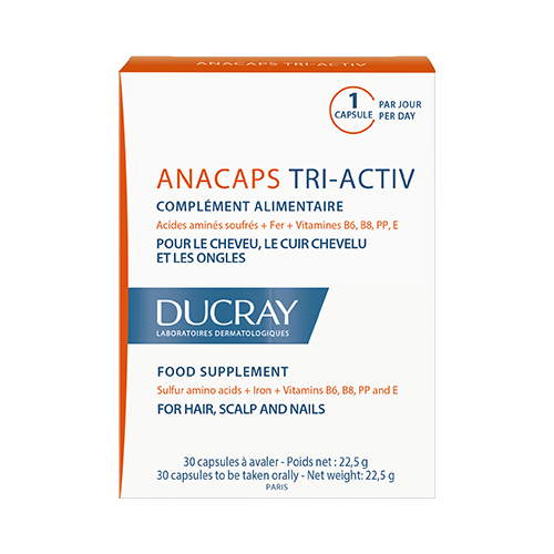 Дюкре Анакапс Реактив капс съдържат уникална комбинация от активни съставки, които оказват благоприятен ефект при оредяваща и слаба коса, както и при чупливи нокти . Капсулите Дюкре Анакапс Реактив активират растежа на косата и ноктите и ги правят по-здрави и лъскави .