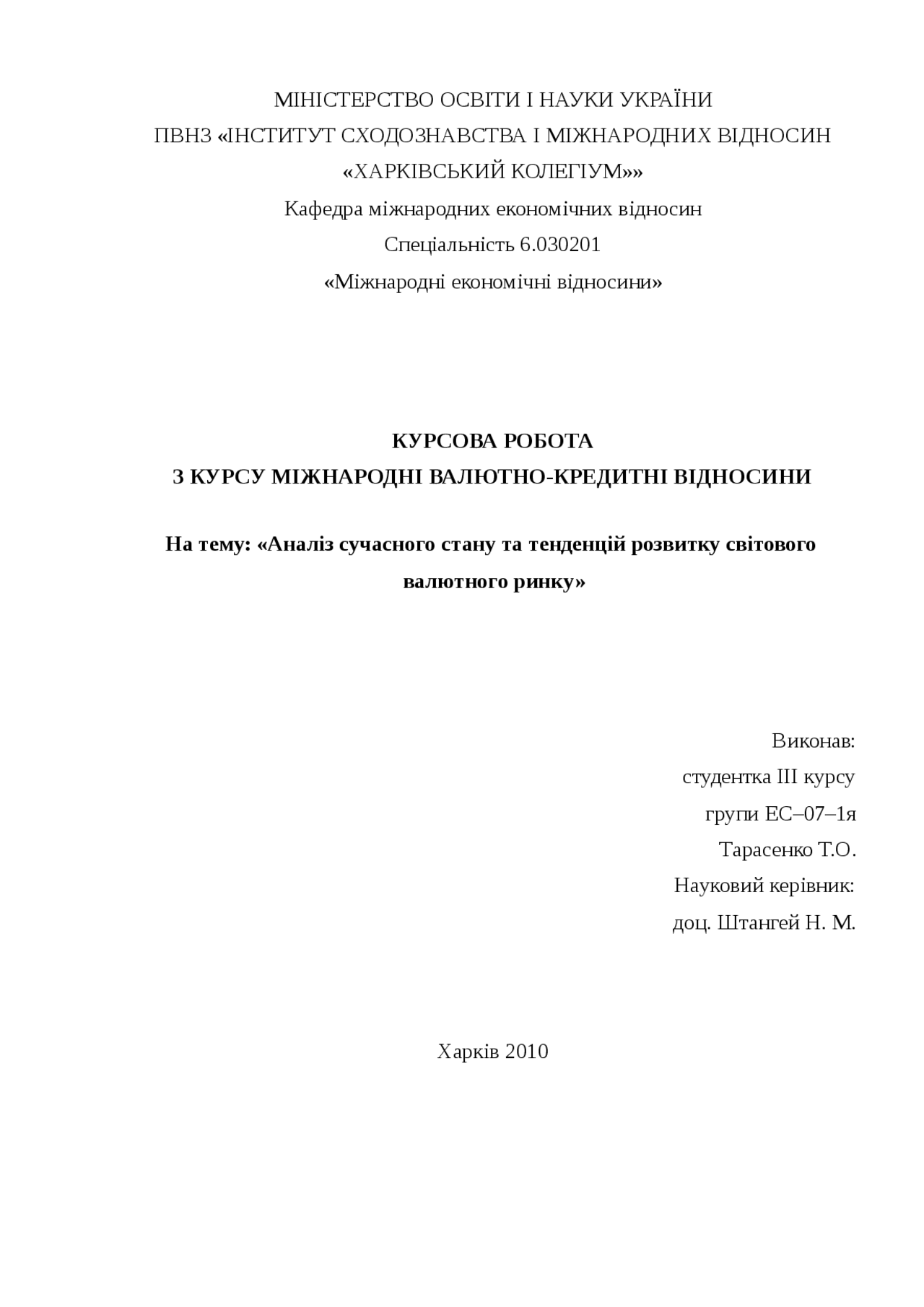 Міністерство освіти України Дніпропетровський Державний університет . факультет міжнародної економіки Кафедра міжнародних економічних відносин і бізнесу