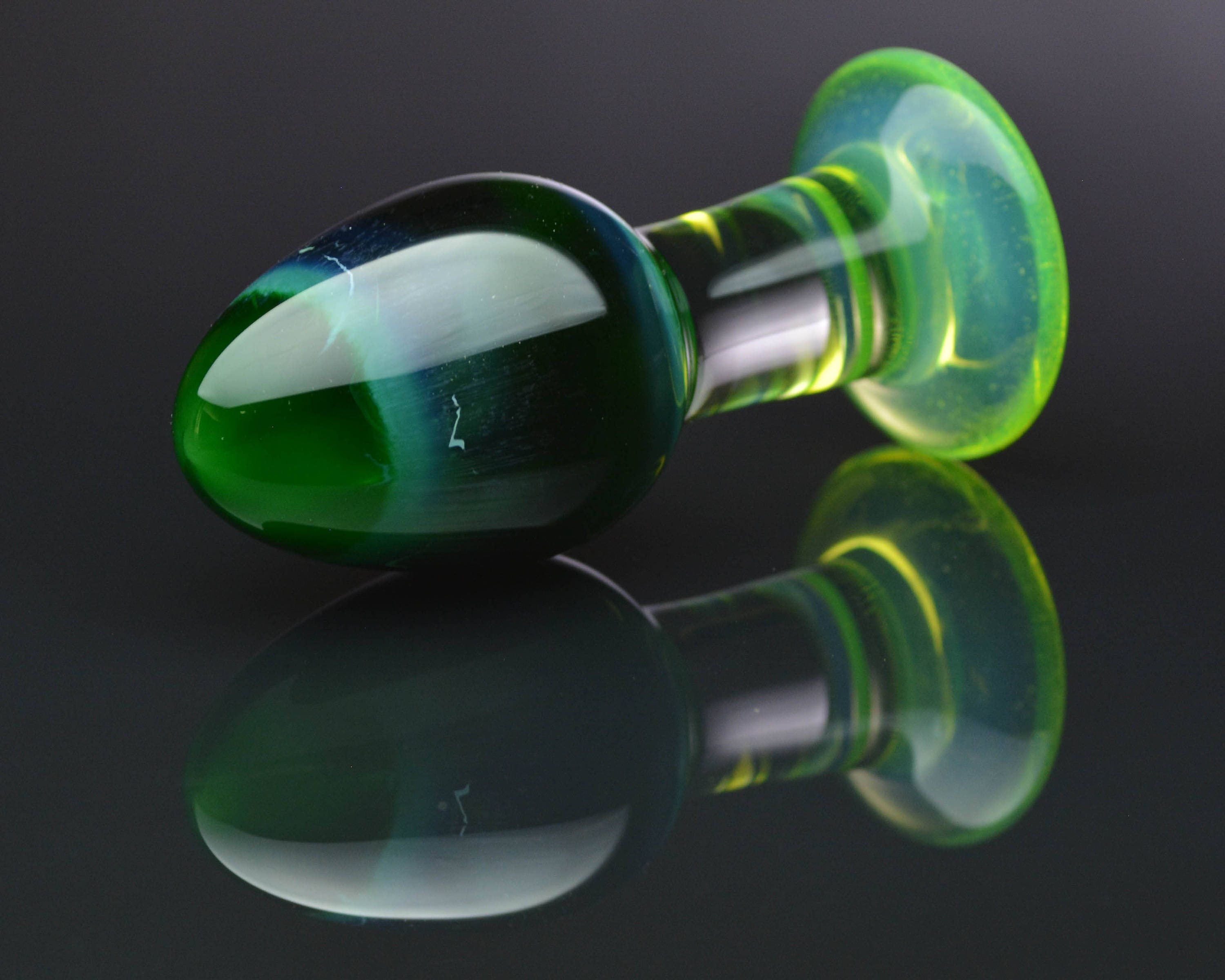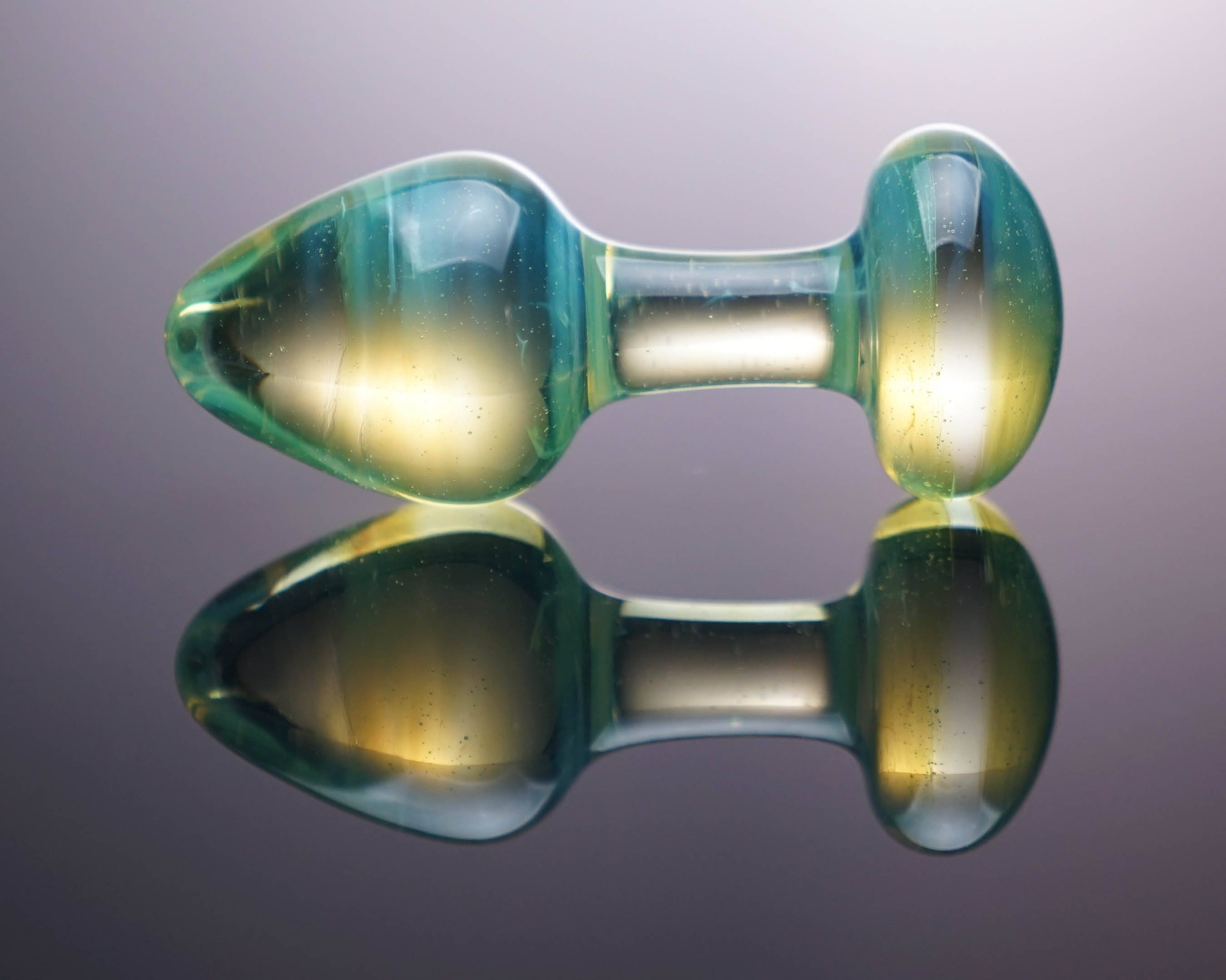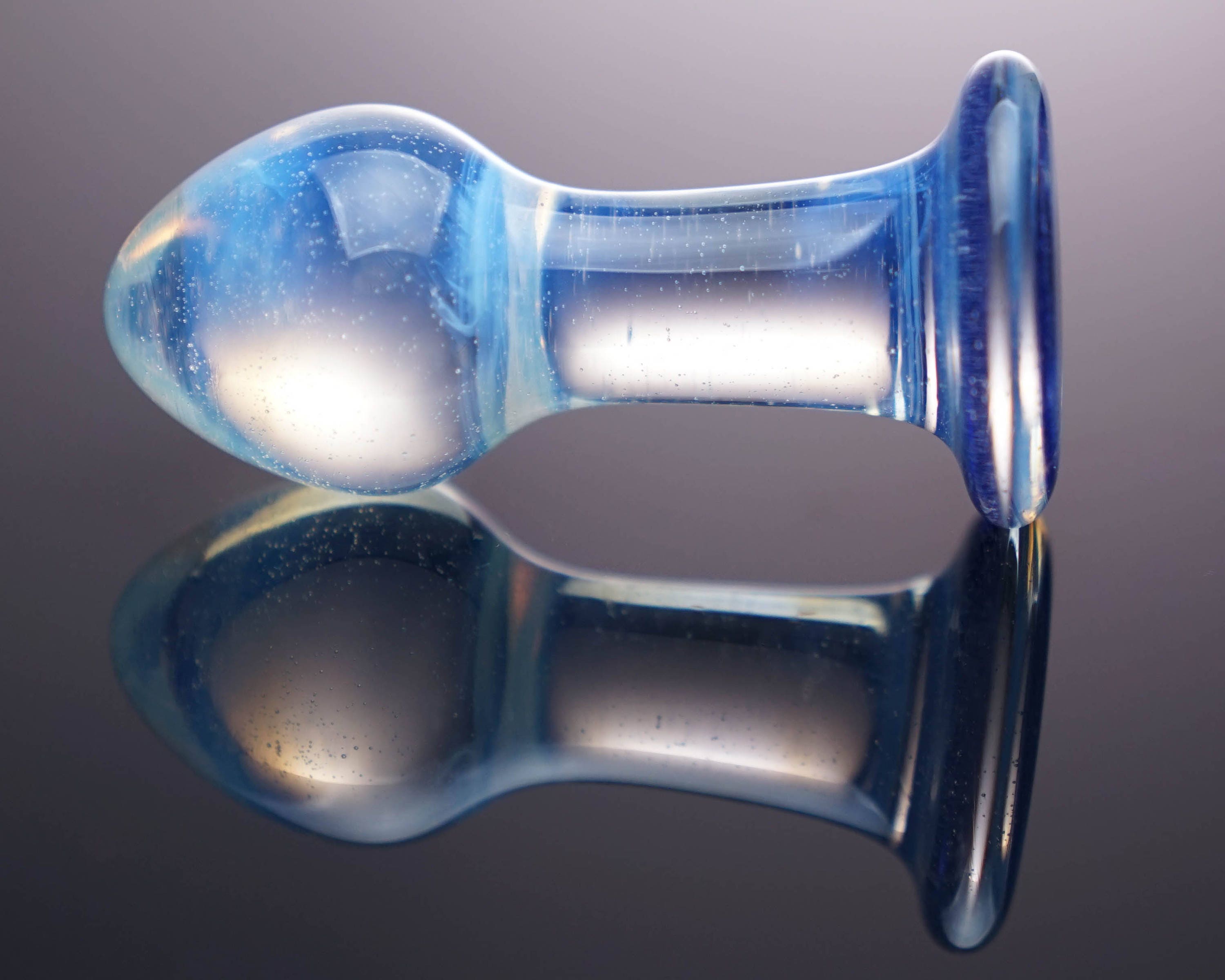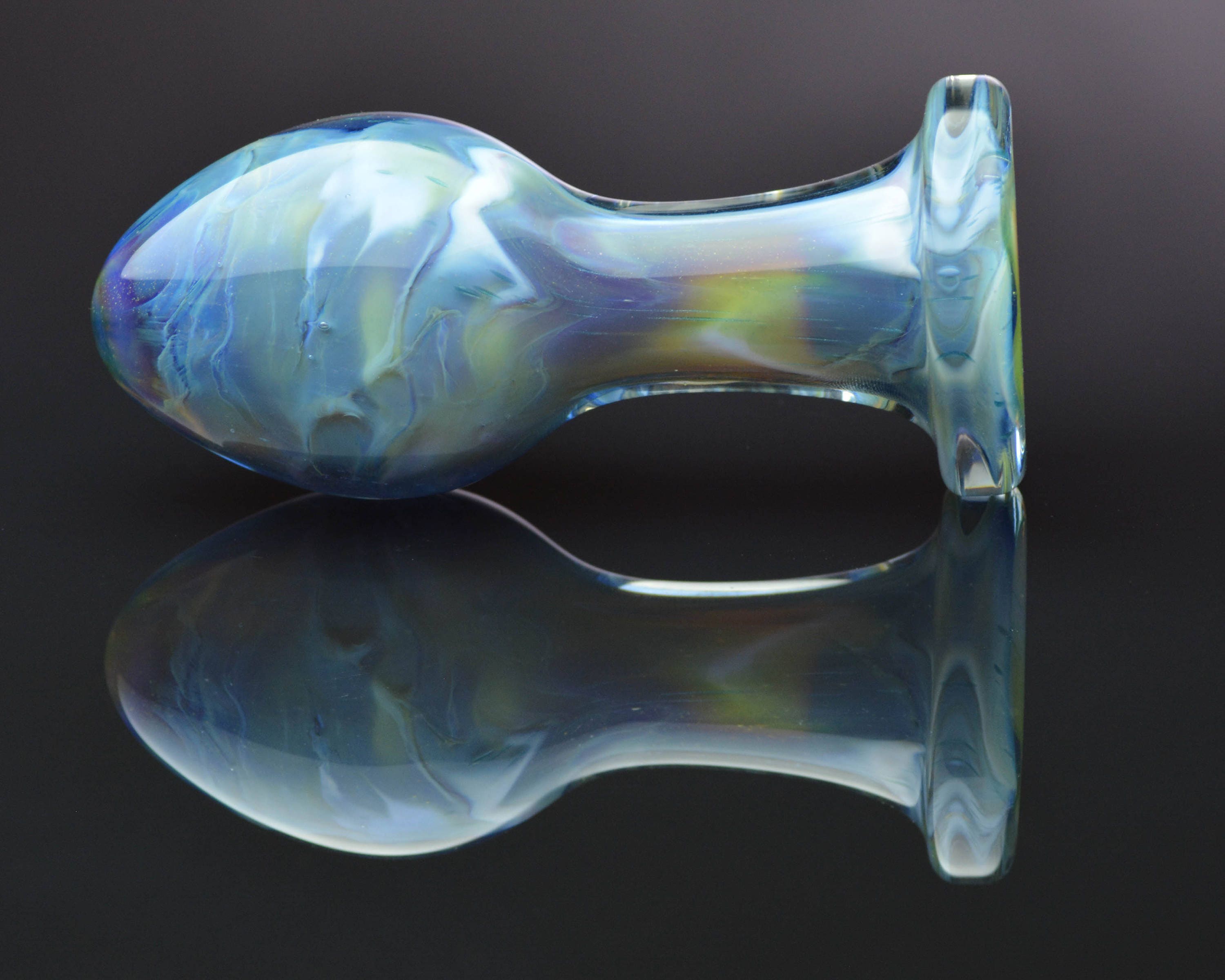 "Rather petite glass anal plug perfect for prostate stimulation. 5.5 -inch length. Handcrafted."