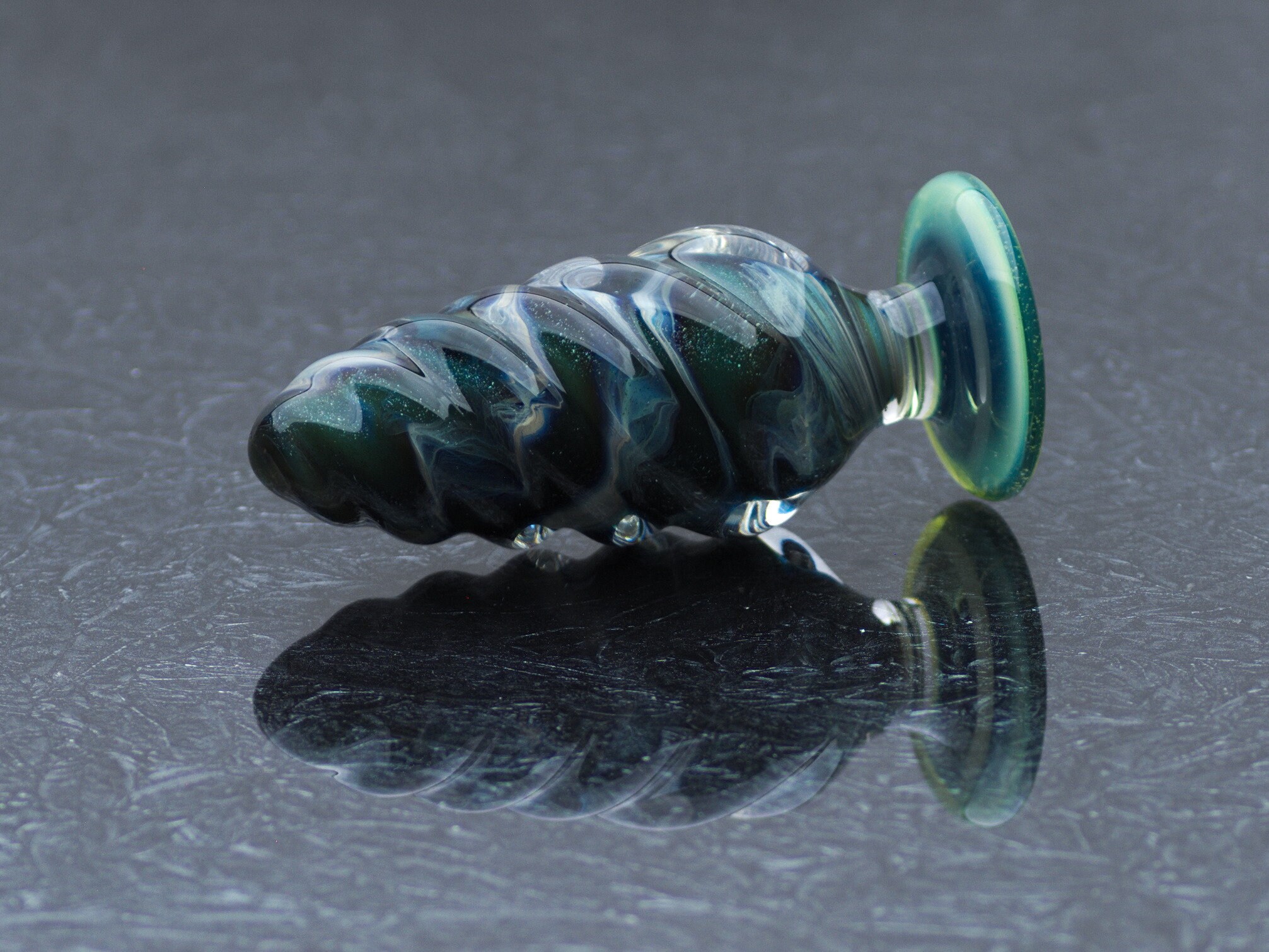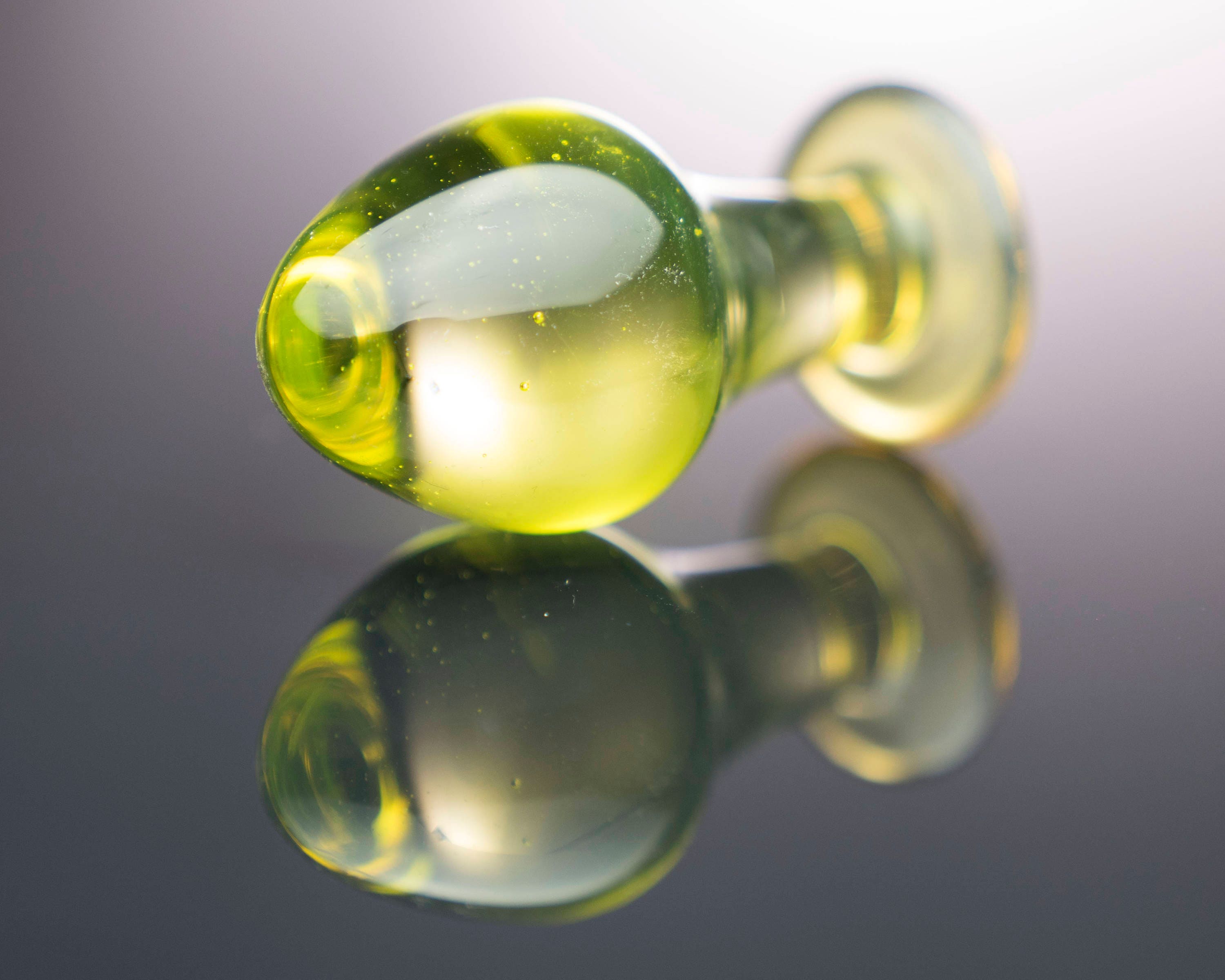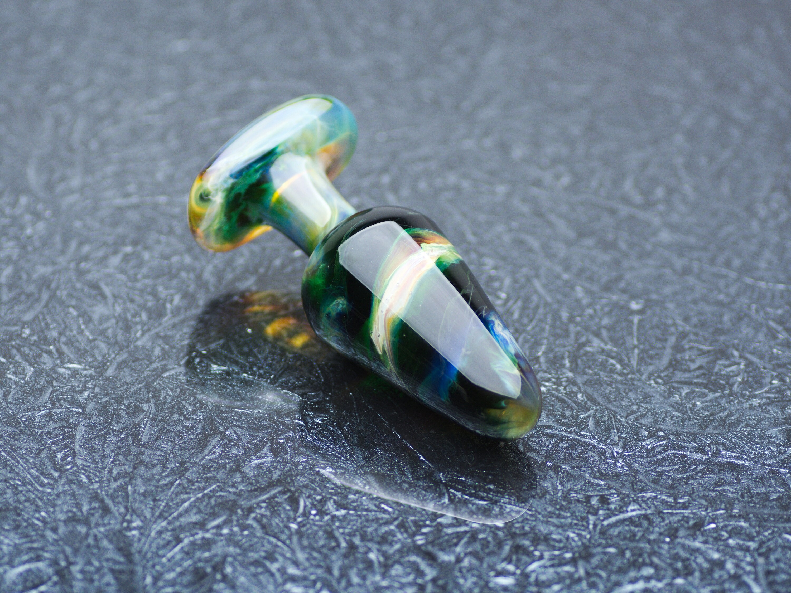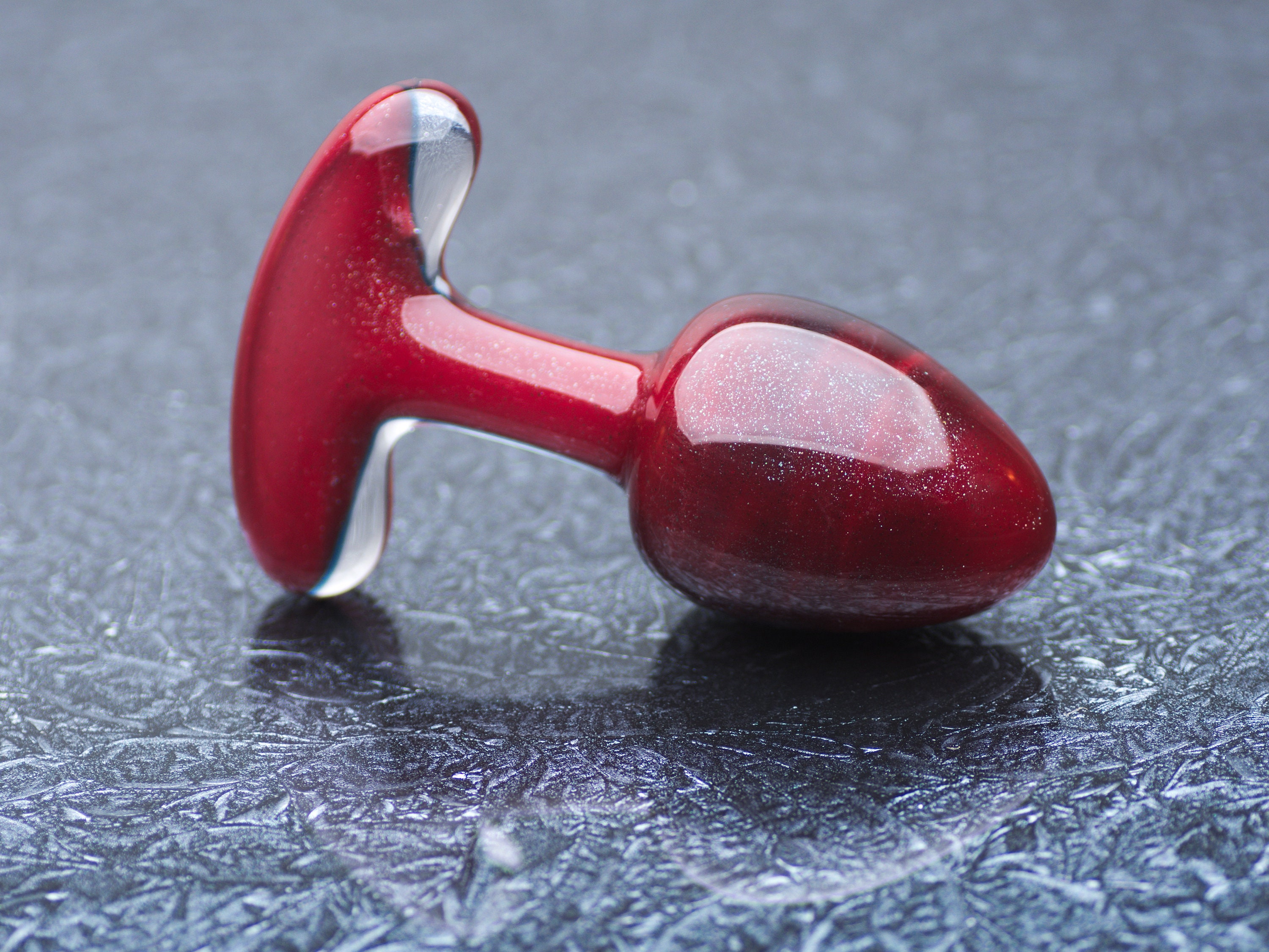 "Rather petite glass anal plug perfect for prostate stimulation. 5.5 -inch length. Handcrafted."