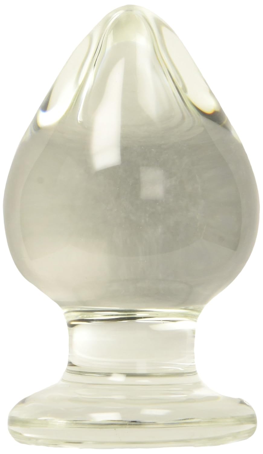 "Elegant design and variable girth of this glass butt plug guarantee pleasure. 4.5 in length. Borosilicate glass."