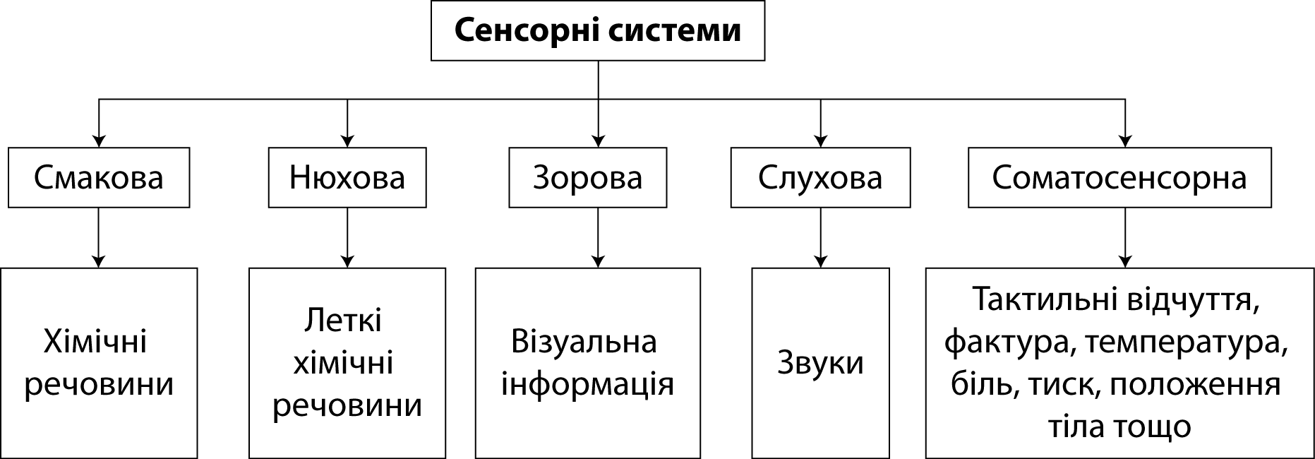 Організм людини має важливі спеціалізовані периферійні утворення — органи чуттів, які забезпечують сприйняття зовнішніх подразнювачів, що діють на організм: зір, слух, нюх, смак, дотик. Існує різниця між органом відчуття та рецептором, на котрий діє подразнювач. Наприклад, око є органом зору, а сітківка — це рецептор, котрий входить до складу органа відчуттів, однак є лише одним з його елементів. Крім того, саме поняття „орган відчуттів" є умовним, оскільки він сам не забезпечує відчуття. Для того, щоб виникло суб'єктивне відчуття, необхідно, щоб збудження, котре виникло в рецепторах, надійшло від них до центральної нервової системи в спеціальні відділення кори великих півкуль головного мозку. Саме діяльність вищих ділянок мозку зумовлює виникнення суб'єктивних відчуттів.