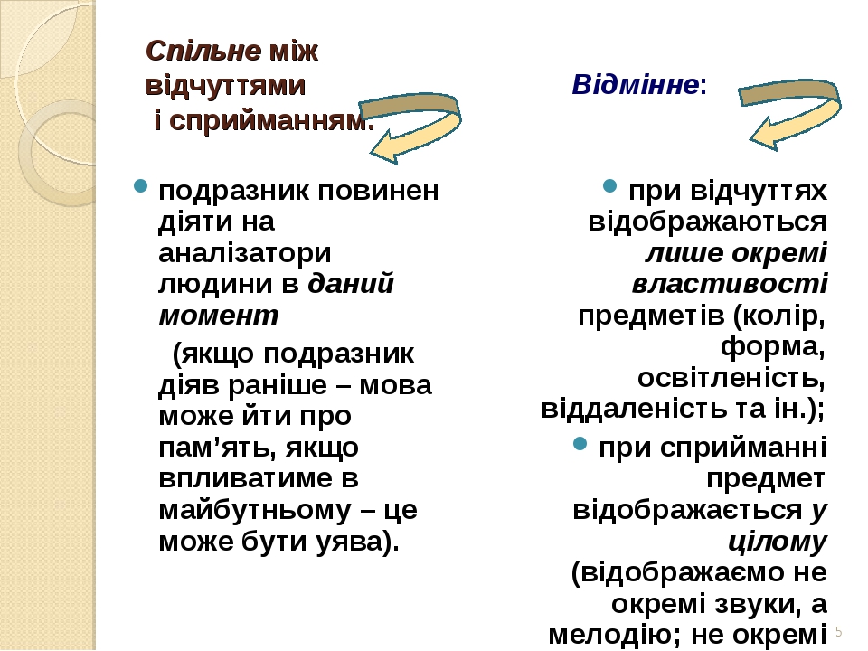 — диференціальна (розрізняльна) чутливість. Аналізатори мають здатність виявляти відмінності за інтенсивністю подразника. Існує диференціальний поріг (найменша величина, на котру необхідно змінити силу подразника, щоб викликати мінімальну зміну відчуття).