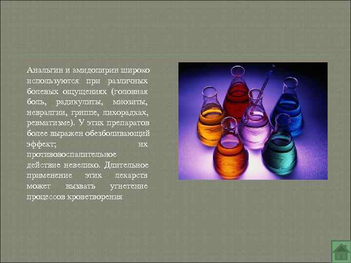Это заметно по тому, что при головной боли, после приема таблетки, боль исчезает на несколько часов, но затем появляется опять, требуя очередной дозы анальгина . Еще ученые обнаружили, что анальгин в сочетании с амидопирином) очень плохо воздействует на кровь, убивая в ней . . .