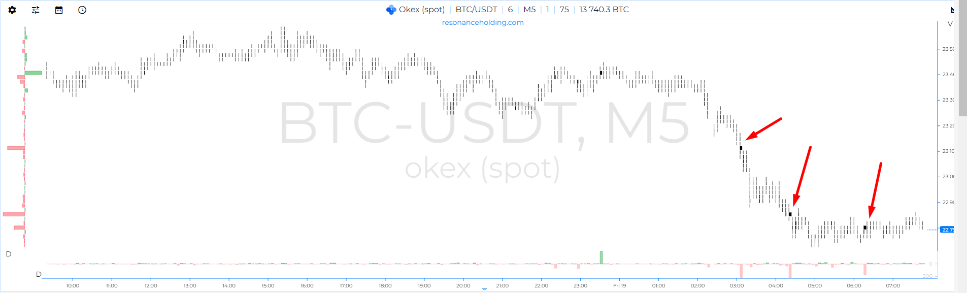 Позитивного мало. Индекс 15 минут подрос, а цена на месте и при это постоянно заходят все новые и новые продажи. О лонгах речи нет, поэтому дальше ожидаю снижения до момента входа крупных объемов на покупку.