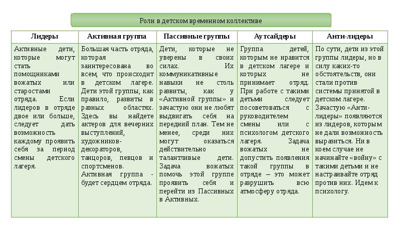Анализ дня вожатого