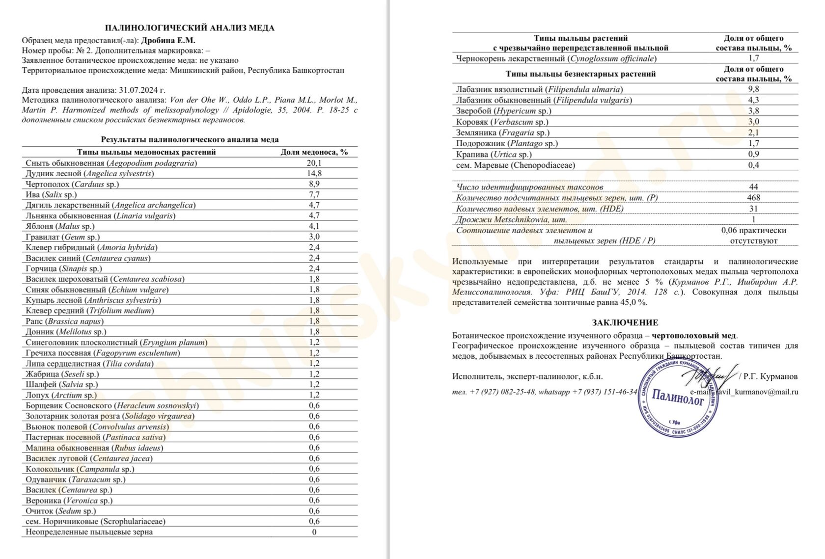 Анализ меда воронеж