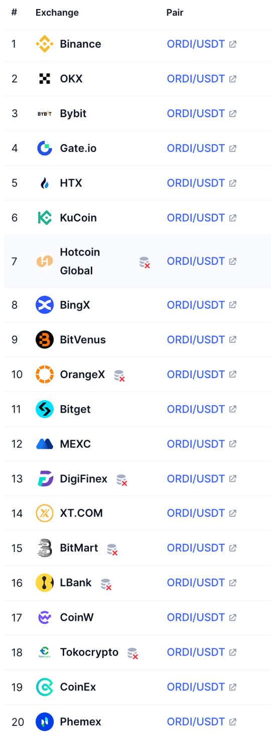 Информация о токене ORDI