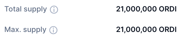Максимальная эмиссия ORDI составляет 21 миллион токенов, которая уже полностью выпущена и может свободно торговаться на рынке.