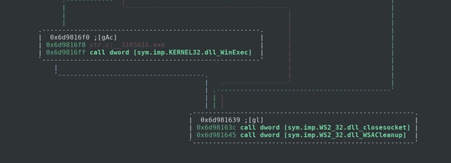 Миниграф, иллюстрирующий вызов WinExec на созданном исполнимом файле: