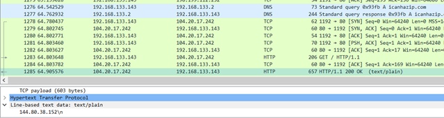 Захваченные пакеты показывают общение между icanhazip.com и моим компьютером: