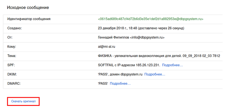 Смотрим в заголовки письма: