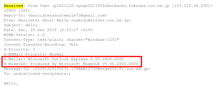 Другая хорошая новость в том, что в зависимости от структуры сети отправителя, в заголовки может попасть даже IP локальной сети. Пример:
