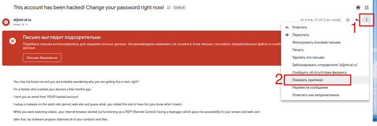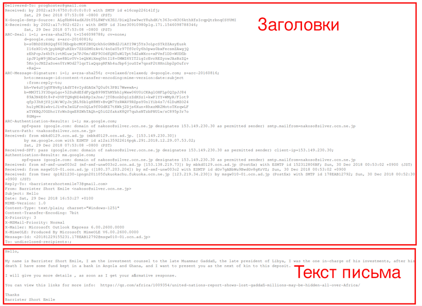 Поиск IP адреса источника мошеннических писем.