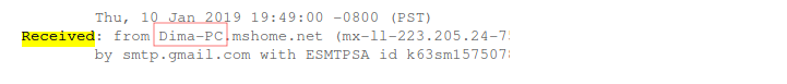 Как мы помним, самые первые заголовки располагаются внизу, самый нижний заголовок Received: