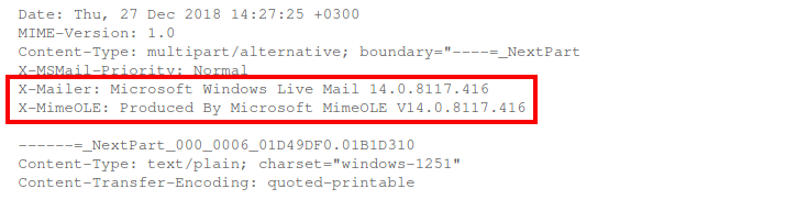 Заголовок, который может добавлять PHP скрипт, содержит информацию о программе, которая отправила письмо. Пример: