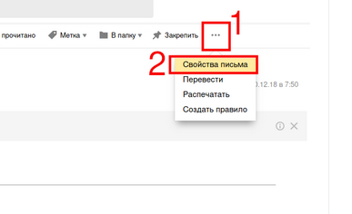 А в веб-интерфейсе почты от Yandex нужно в меню выбрать Свойства письма: