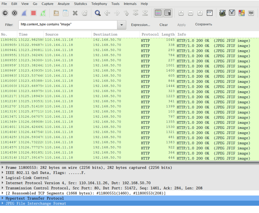 Для выделения разных данных нам понадобятся фильтры Wireshark. Здесь я покажу пример использования только некоторых фильтров, рекомендуется изучить большую подборку полезных фильтров Wireshark.