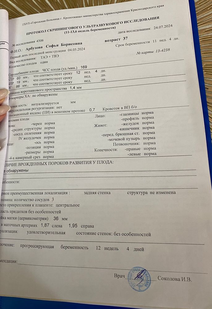 Анализы на 20 неделе