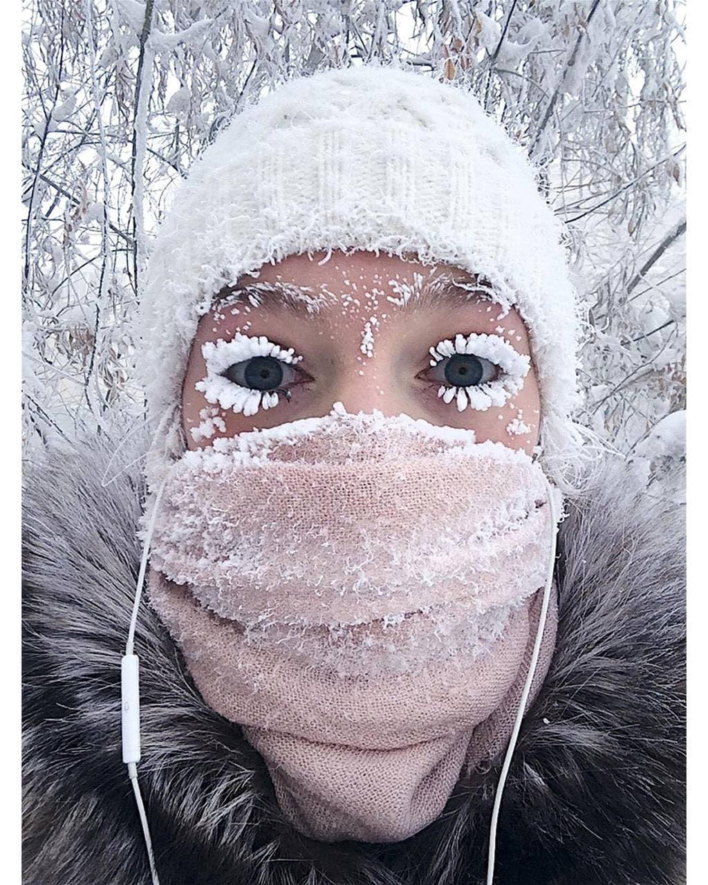 Снова наступила зима, и Анастасия не смогла не повторить своё знаменитое морозное фото . Якутянка Анастасия Груздева повторила своё знаменитое фото с заснеженными ресницами ровно через год .
