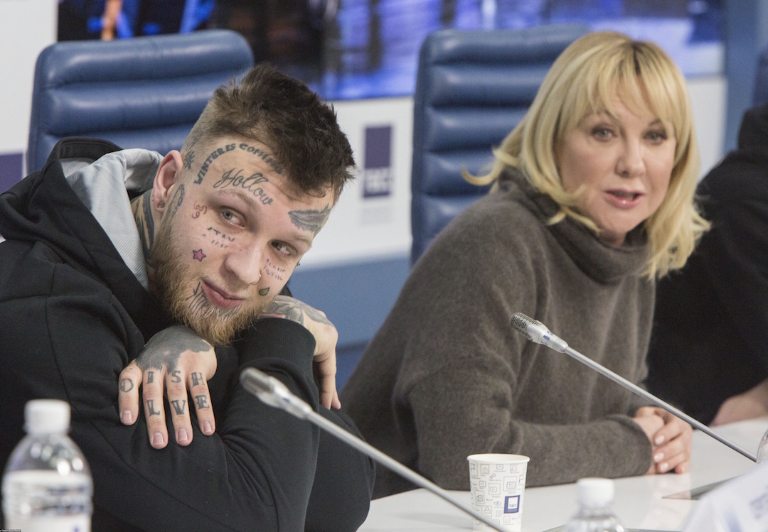 С ног до головы покрытый татуировками сын Елены Яколевой . . .