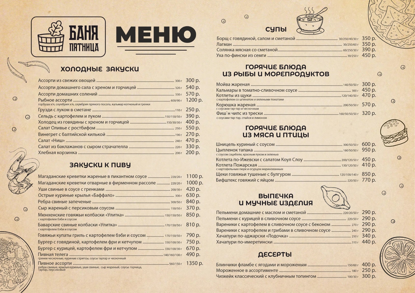 Андреевские бани меню