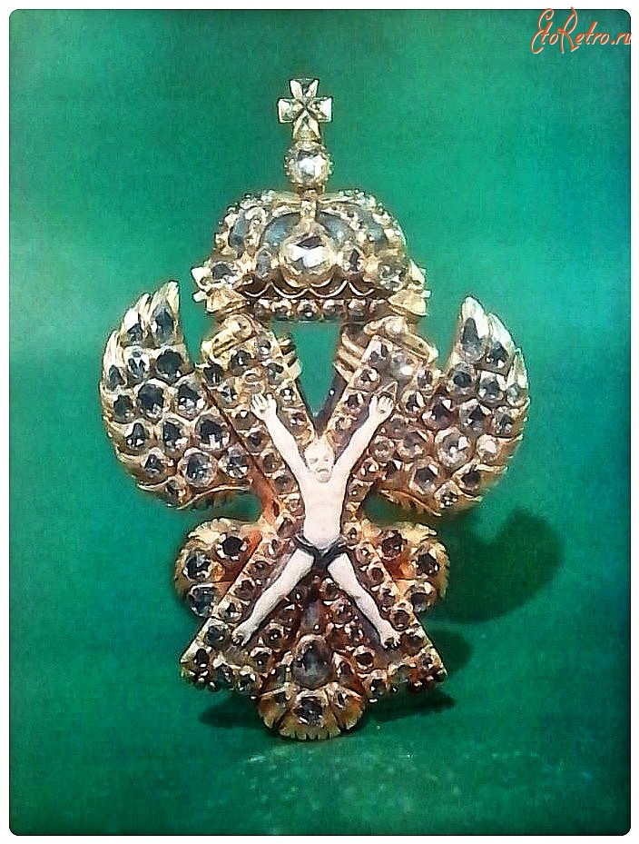 1) Знака-креста, основным изображением которого был Святой Андрей Первозванный, распятый, по преданию, на кресте Х-образной конфигурации; на четырёх концах креста буквы: s .a .p .r ., что означает лат .