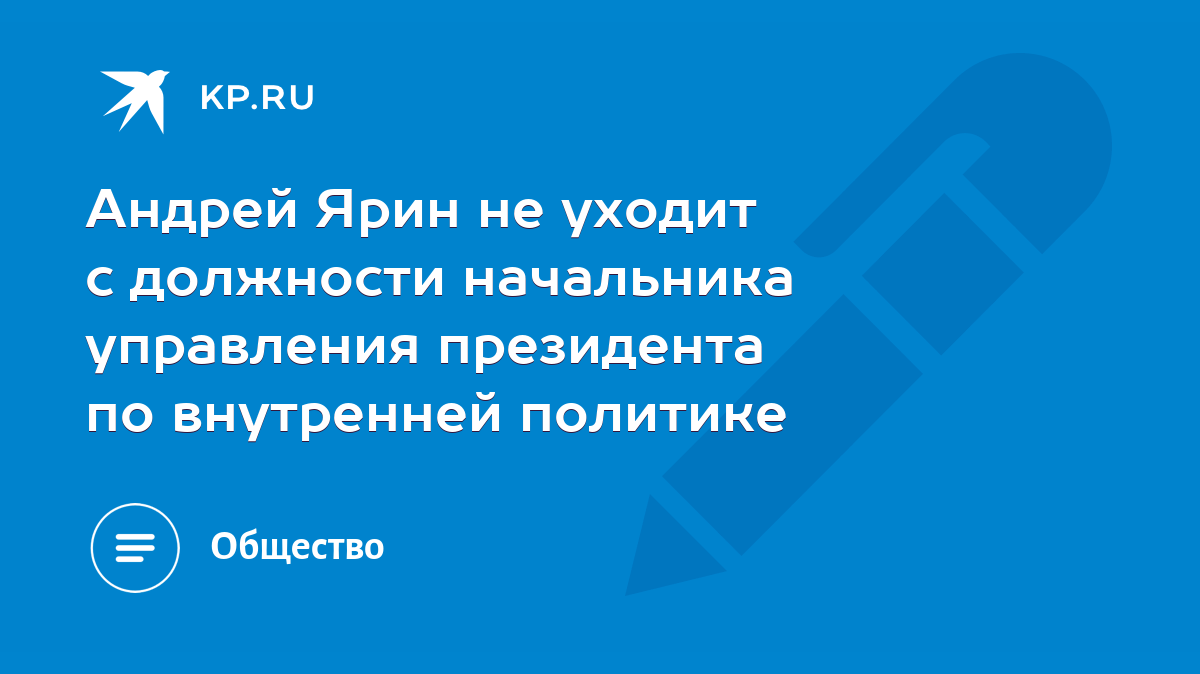 Президент РФ Владимир Путин отстранил от должности главу управления внутренней политики администрации . . . Управления президента по внутренней политике назначен Андрей Ярин .