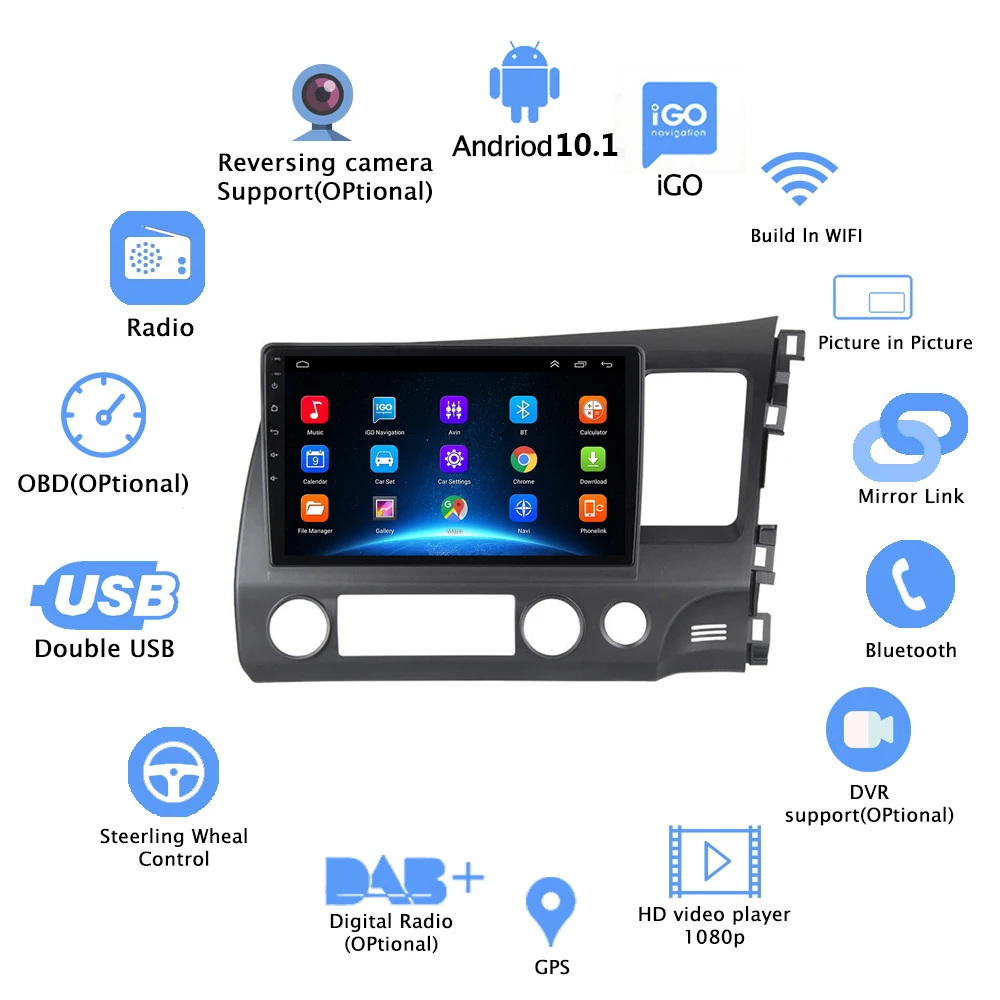Android 12 Car Radio for Honda Civic RHD 2005 - 2012 Multimedia Player 2Din Right Hand Drive Navigation GPS Carplay Android auto - Купить с бесплатной доставкой