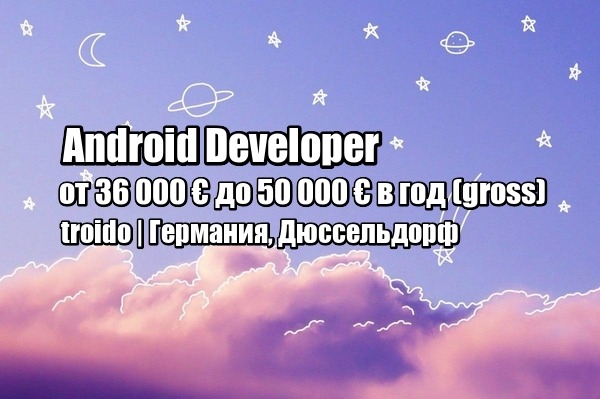 Мы ищем Android разработчиков в свою команду, помогаем с релокацией (трудоустройство по голубой карте), предоставляем идеальные условия для развития и работы (4 рабочих дня + 1 день для обучения), а также конкурентную, постоянно возрастающую заработную плату (оплачиваем сертификаты - вы их получаете - зарплата возрастает). Важны хорошие знания английского и android-разработки.