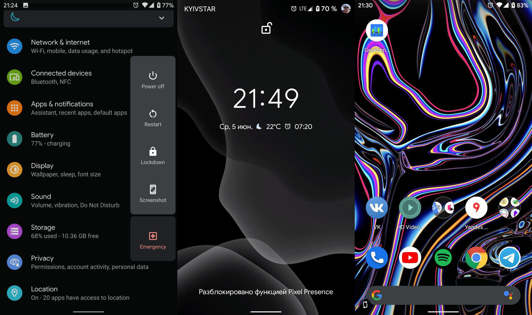 Изменения на первый взгляд - в некоторых местах шрифт стал жирнее, добавили икноку ручного поворота экрана. Появилось немного новых анимаций и неизвестная фича Pixel Presence.