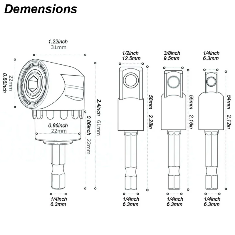 Angle Drill Chuck 105 Degree Attachment Hex Socket Adapter Extension Set Power Tool Driver Rotatable Screwdriver Bit Holder Nut - Купить с бесплатной доставкой