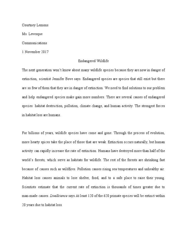 Animal Extinction Essay | Bartleby