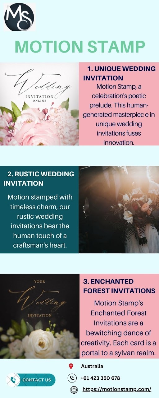 , designed with love and imaginings, bring your love story to life and provide an unique, amazing declaration of your big day. Choose Motion Stamp to set the tone for your wedding with style .
