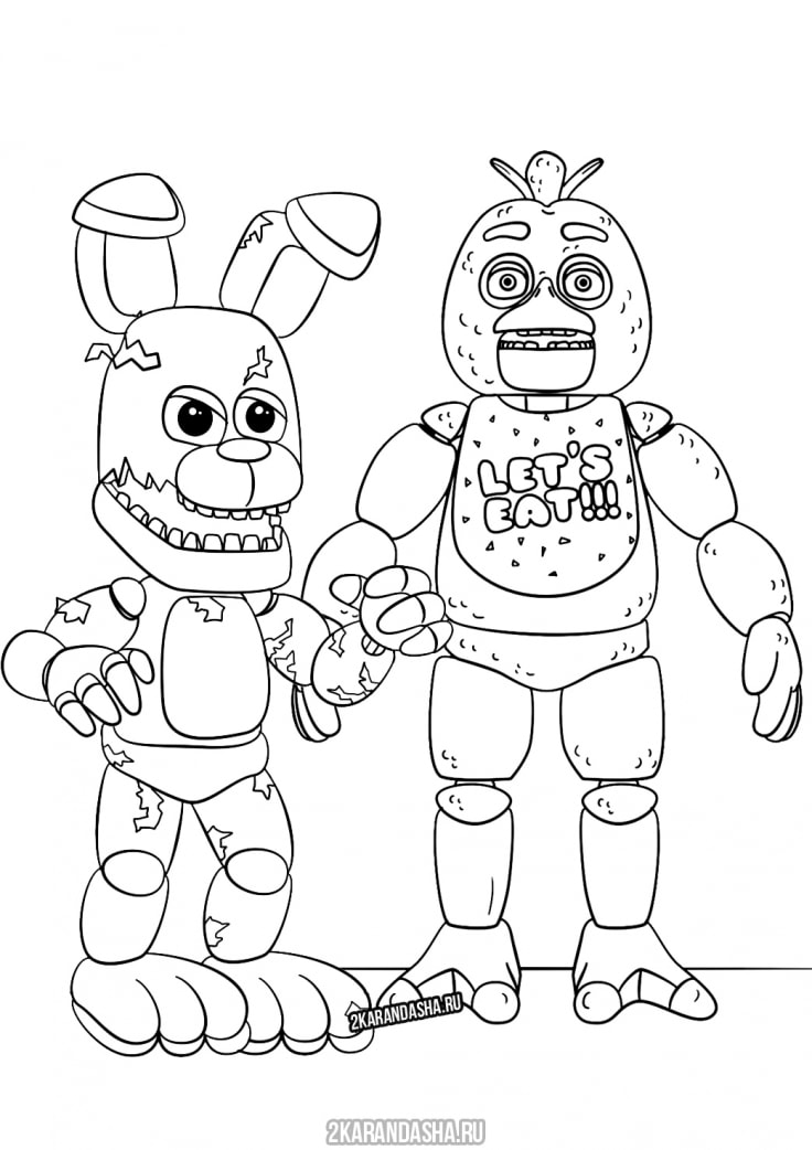 Раскраски Аниматроники — Скачать или Распечатать бесплатно . Аниматроники: раскраски с персонажами известной игры Five Nights at Freddy's (Пять ночей у Фредди) , которую создал . . .