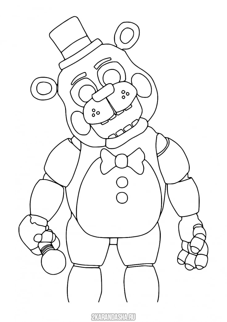 Раскраски ФНАФ и Аниматроники для детей . Аниматроники FNAF . Медведь Фредди Фазбер - солист банды и главный антагонист всей серии игр Five Nights at Freddy's, что отражено в . . .