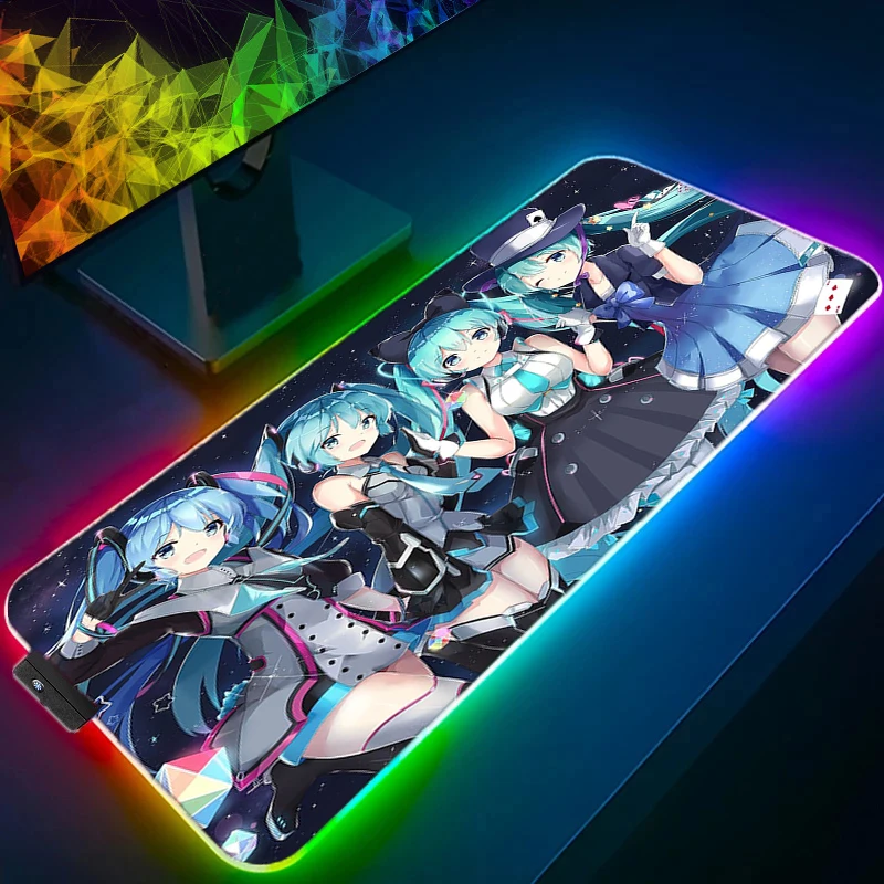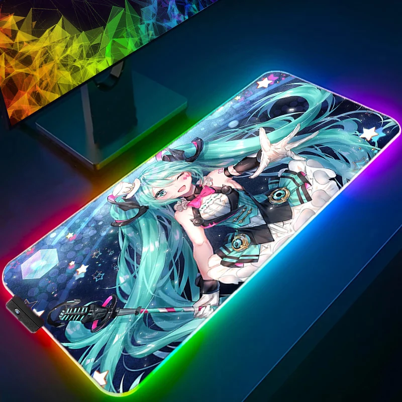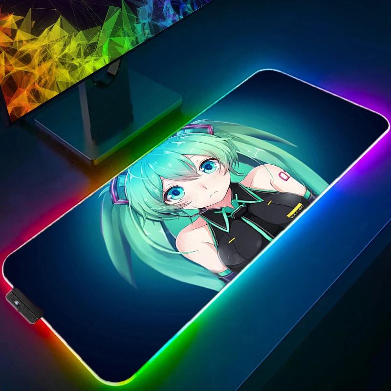 Anime Girl Kawaii RGB Large Mousepad PC Keyboard Office Cute H-Hatsune Miku LED Mouse Pad Laptop Gaming Luminous Table Mat Rug - Купить с бесплатной доставкой