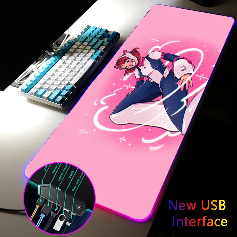 Anime Girl Multi-interface Large RGB Gaming Mouse Pad Kawaii Pink Four USB Docking Dock USB HUB Typec Interface Gamer Desk Mat - Купить с бесплатной доставкой