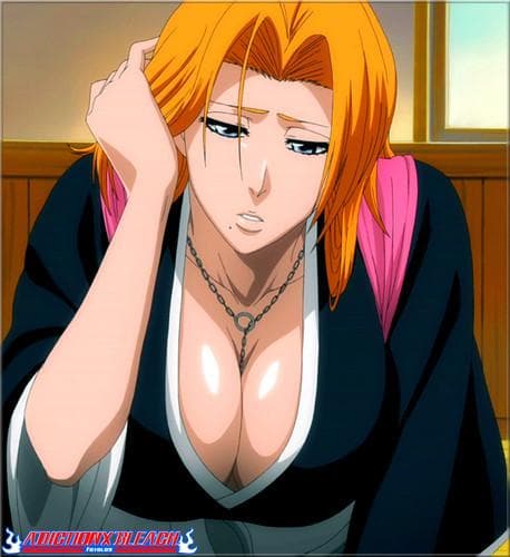 Rangiku has long and wavy blonde hair, blue eyes, full lips, and a mark situated under the right side of her mouth. She is notable for her voluptuous figure, of which her most unmistakable attribute is her huge bosoms. She dresses in the attire common for Shinigami. However, she lets her robes balance free for her full chest to be uncovered.