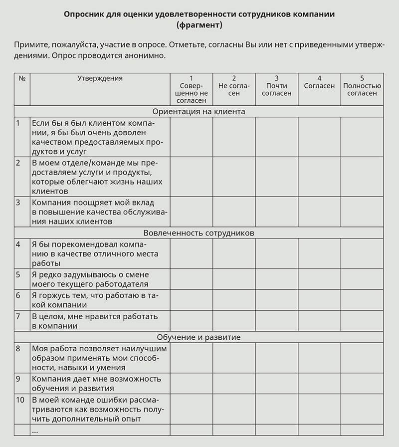 Анкеты результатов обучения