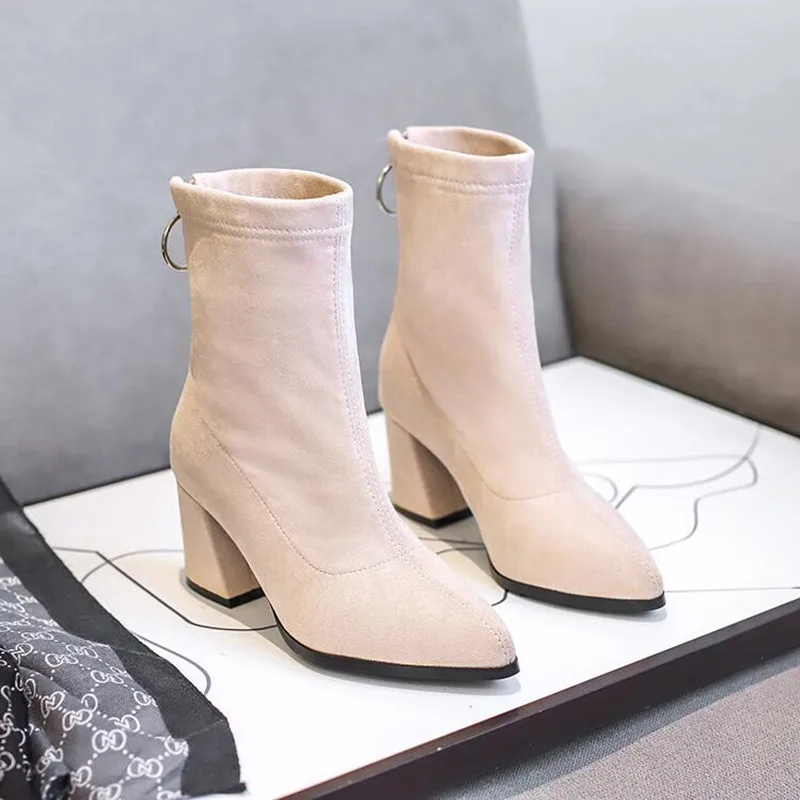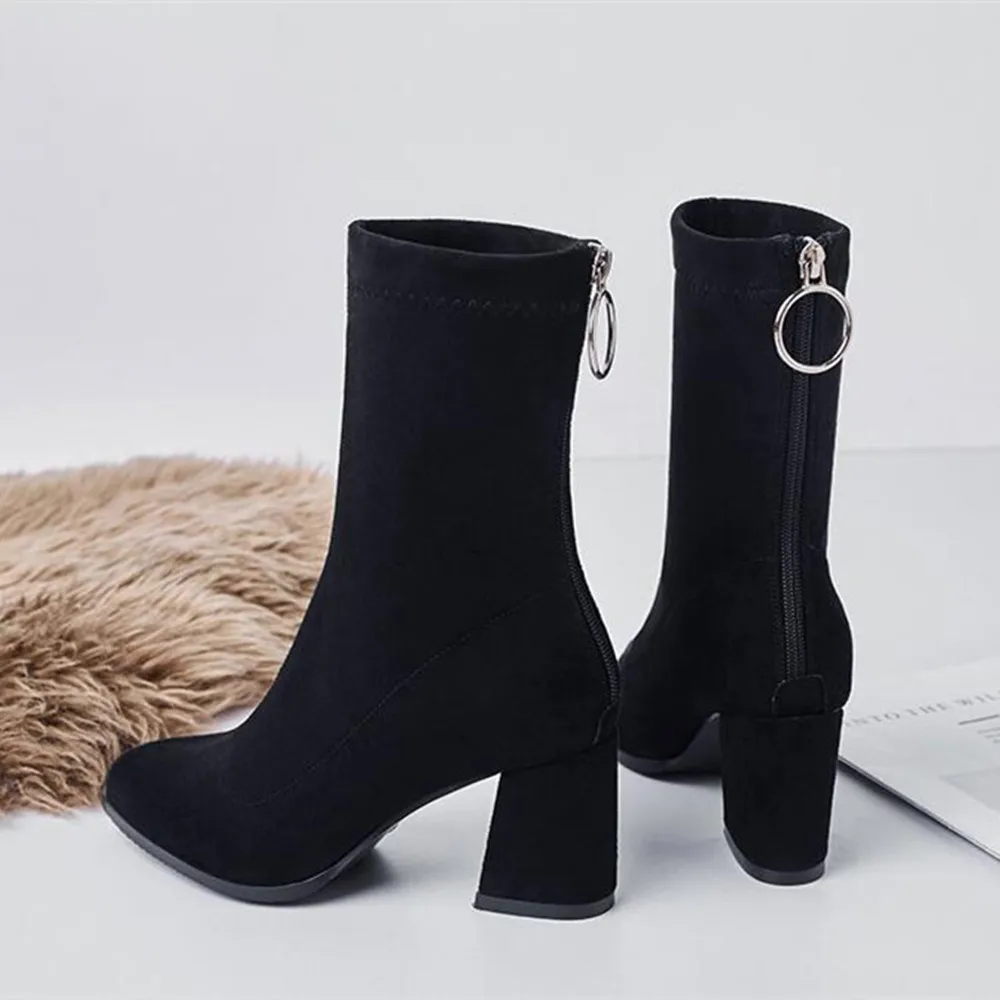 SaXRjRjvOДолго искали Ankle Woman Boots High Heels Combat Boots Chunky Heels Pointed Toe Fashion Zipper Stretch Suede Ladies Korean Fashion Shoes, но не могли найти? Предоставляем вашему вниманию Ankle Woman Boots High Heels Combat Boots Chunky Heels Pointed Toe Fashion Zipper Stretch Suede Ladies Korean Fashion Shoes по лучшей цене на рынке!