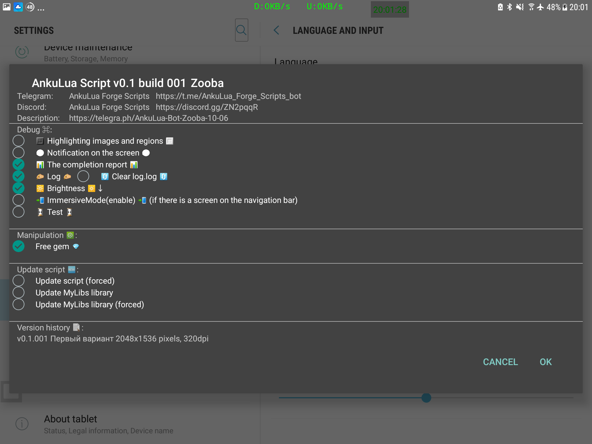 - Установить AnkuLua на устройство