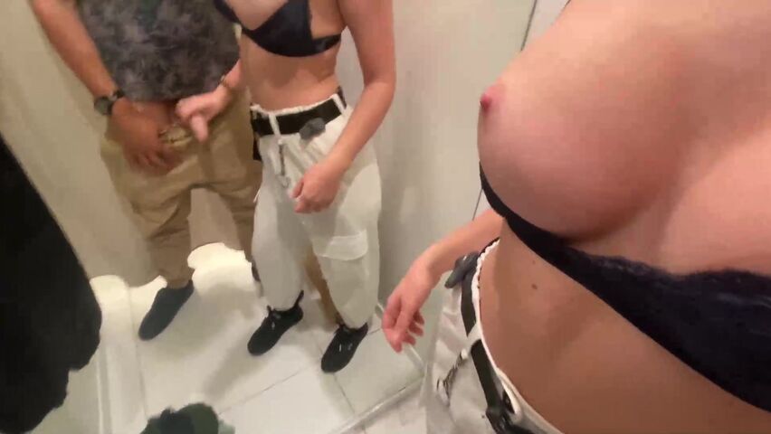 Anna teasing Strangers in Public Men's room